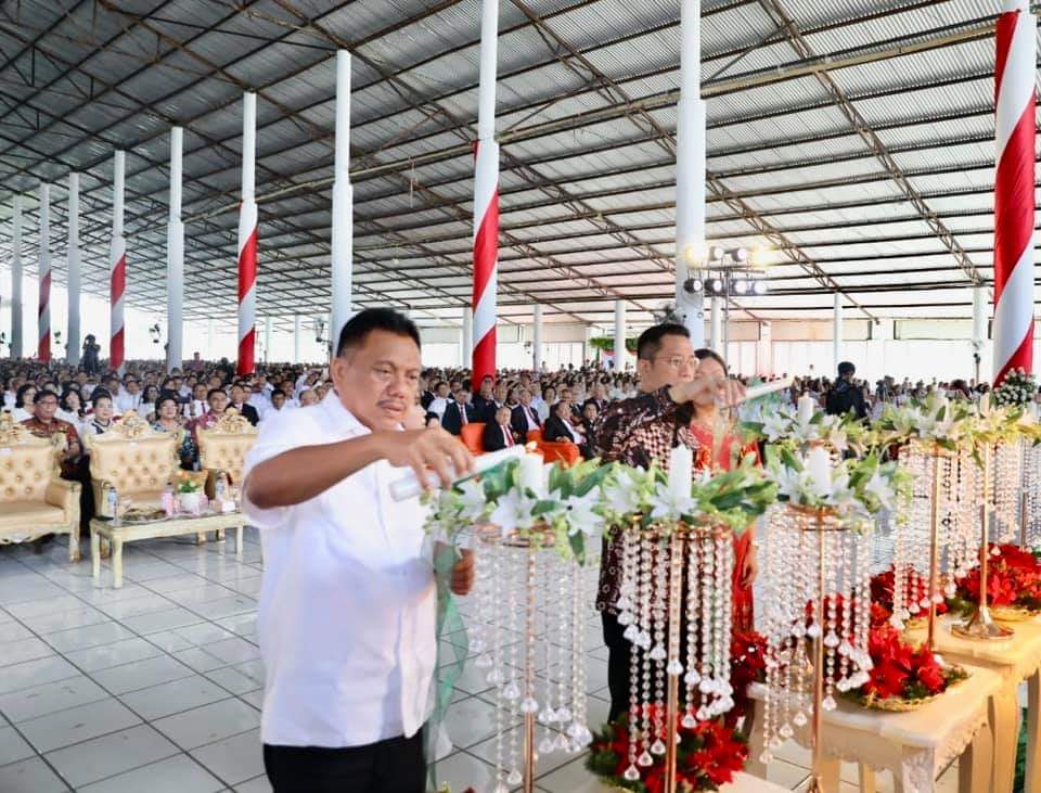 Lanjut Olly, Natal juga memberikan semangat persatuan bagi pemerintah dan gereja dalam membangun daerah dan membawa harapan dan kedamaian untuk seluruh masyarakat Sulut.