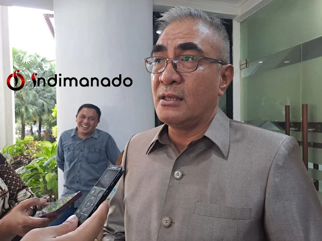 Sekretaris Provinsi Sulut, Steve Kepel ST MSi saat memberi keterangan di Lobi Kantor Gubernur Sulut, Kamis (1/6/2023). Foto Alfa J. Liando/indimanado.com |